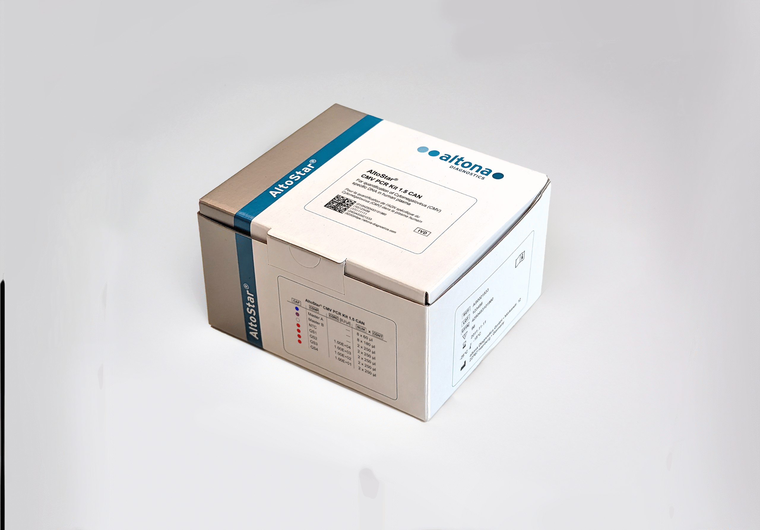 The AltoStar® CMV PCR Kit 1.5 CAN is an in vitro diagnostic test, based on real-time PCR technology, for thequantification of human cytomegalovirus (CMV) specific DNA in human EDTA plasma.