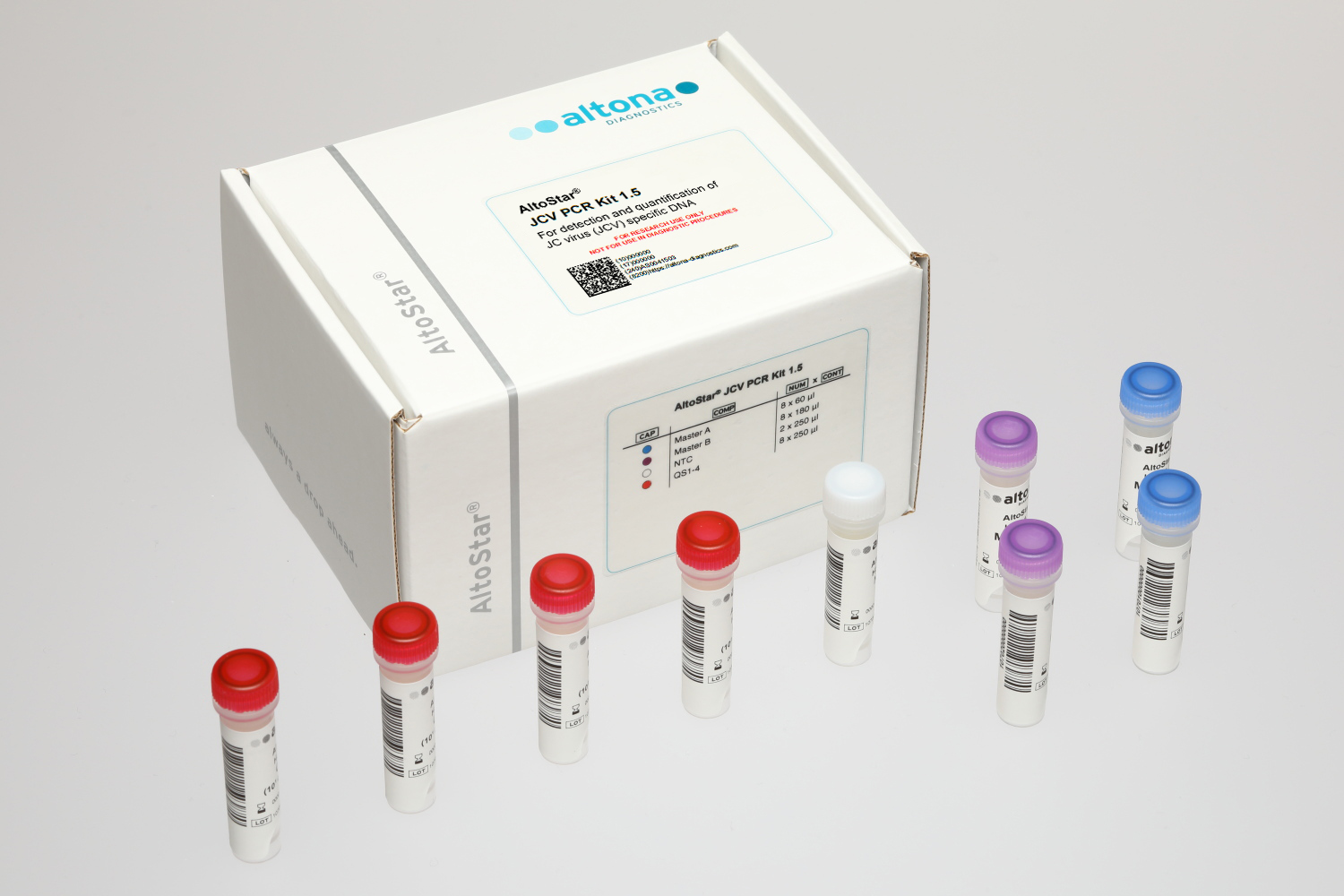 The AltoStar® JCV PCR Kit 1.5 is a reagent system, based on real-time PCR technology, for the detection and quantification of JC virus (JCV) specific DNA.
