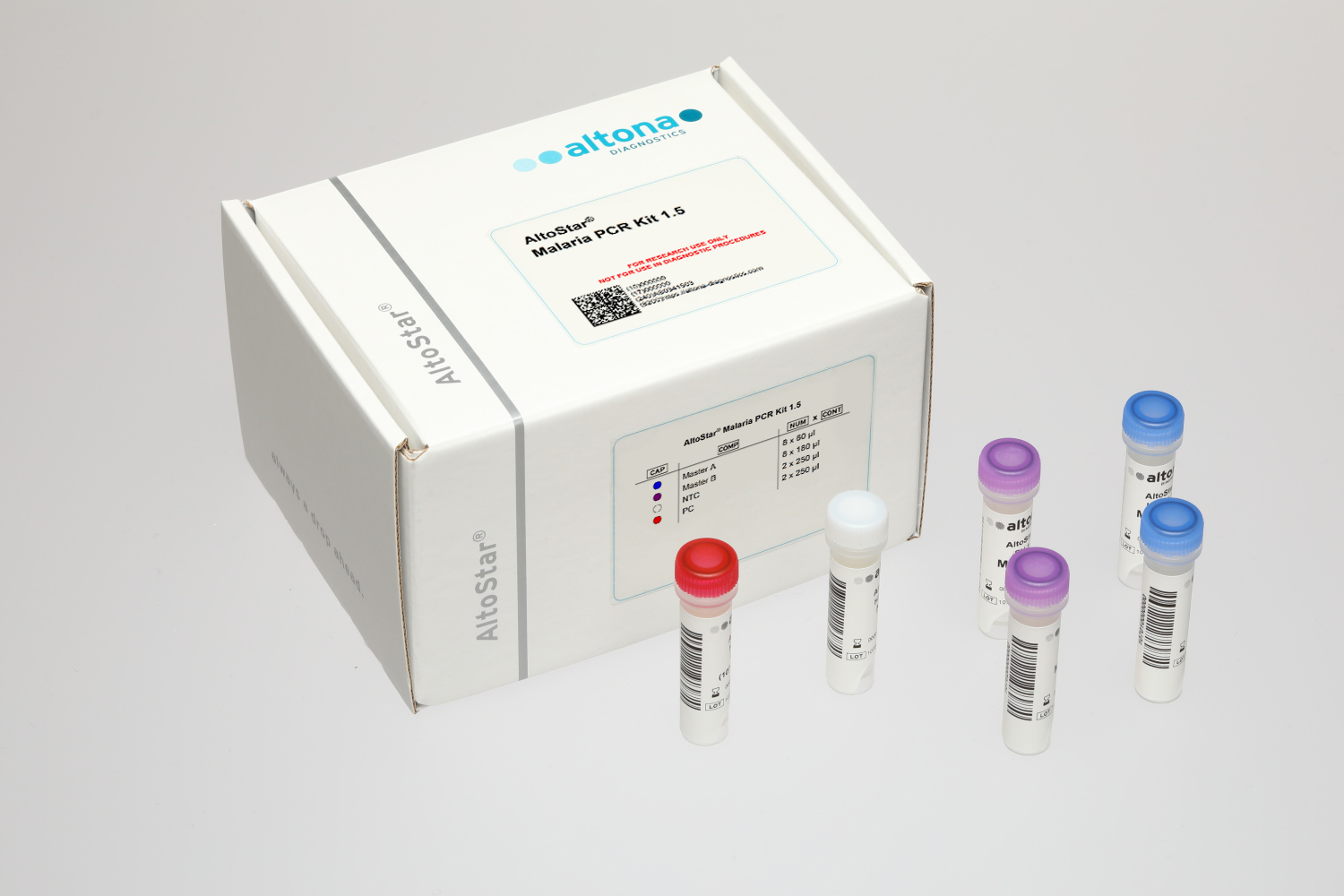 The AltoStar® Malaria PCR Kit 1.5 is a reagent system, based on real-time PCR technology, for the qualitative detection of DNA of Plasmodium falciparumPlasmodium vivaxPlasmodium malariaePlasmodium ovale and Plasmodium knowlesi.